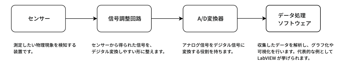 DAQ(Data Acquisition)システムは、物理現象を測定し、そのデータをデジタル形式で記録・解析する一連の仕組みです。