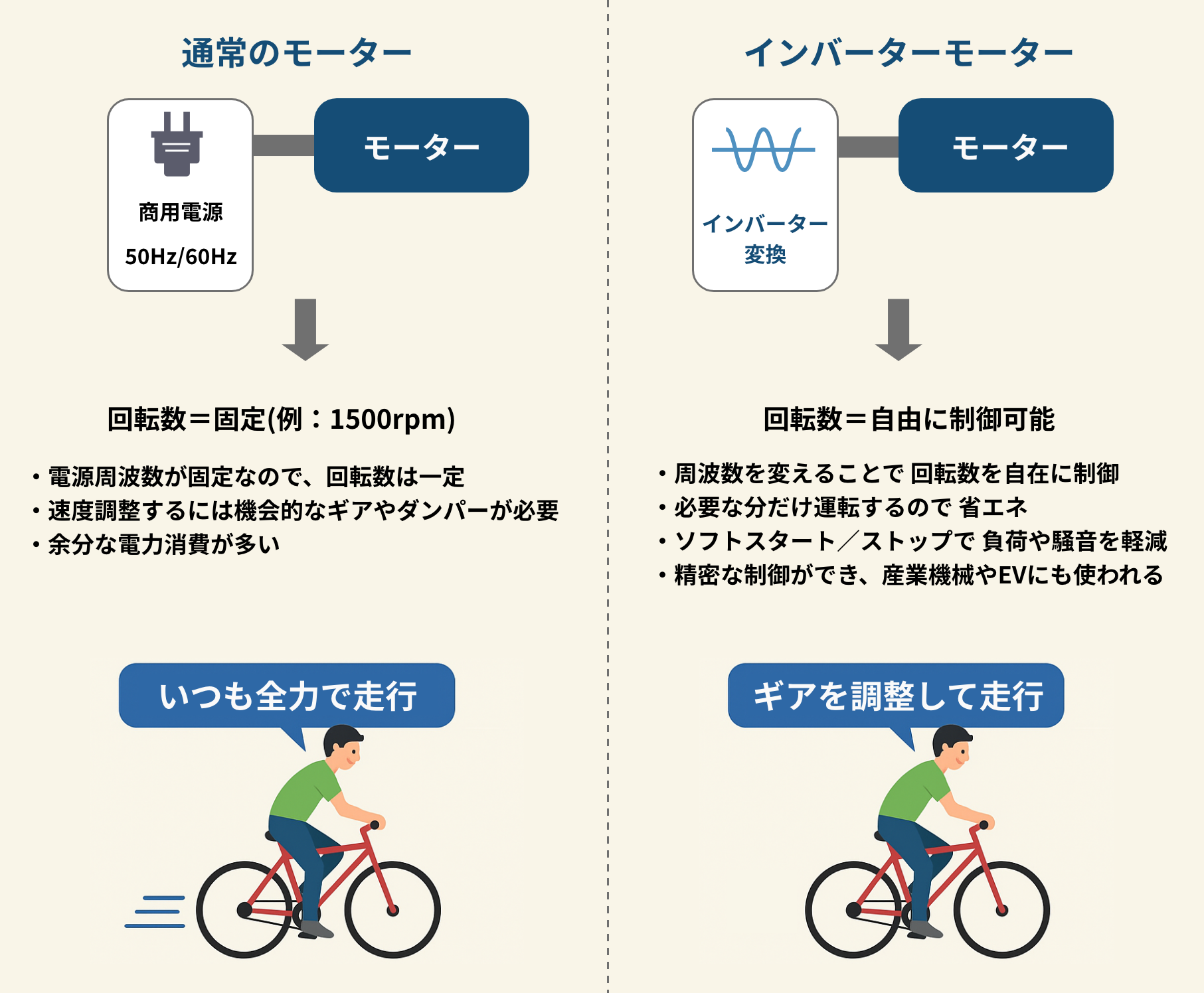 通常のモーターとインバーターモーターの違い