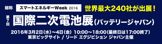 スマートエネルギーWeek2016「第7回 国際二次電池展(バッテリージャパン)」開催情報