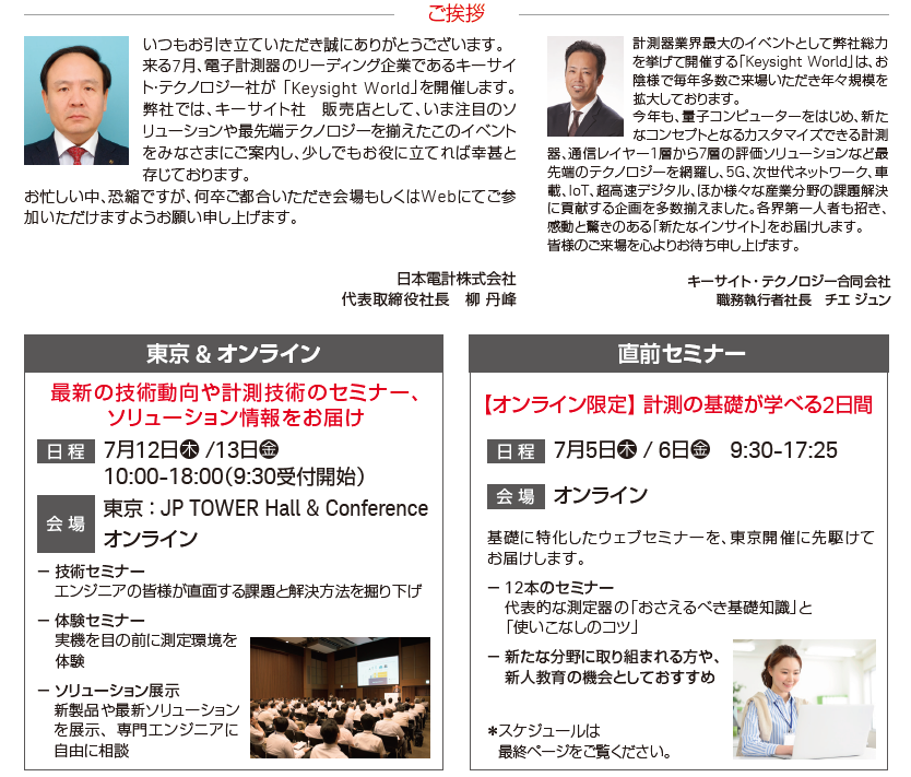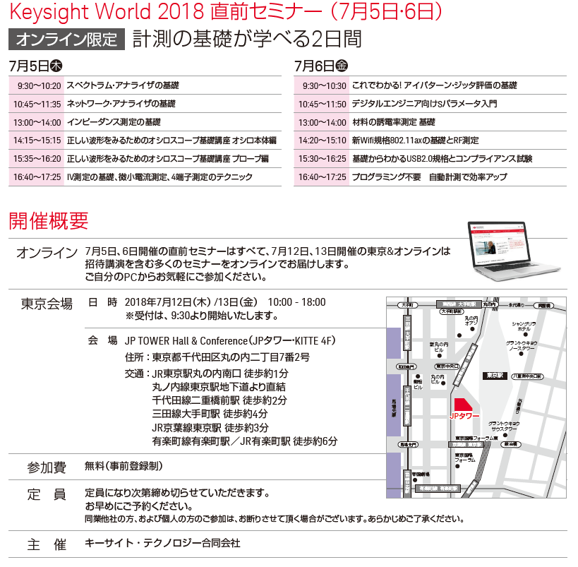 タイムスケジュールキーサイトワールド2018のセミナー・ミニセミナー・招待講演のタイムスケジュールは下記PDFをご参照ください。2018年7月12(木)のタイムスケジュール2018年7月13(金)のタイムスケジュール
