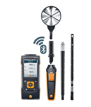 testo 440 は、1 台で風速、風量、温度、湿度などが計測できるコンパクトな環境計測器です。このたび、新たにBluetooth モジュールを搭載し、本体とプローブを無線で接続、コードレスでの計測を実現しました。