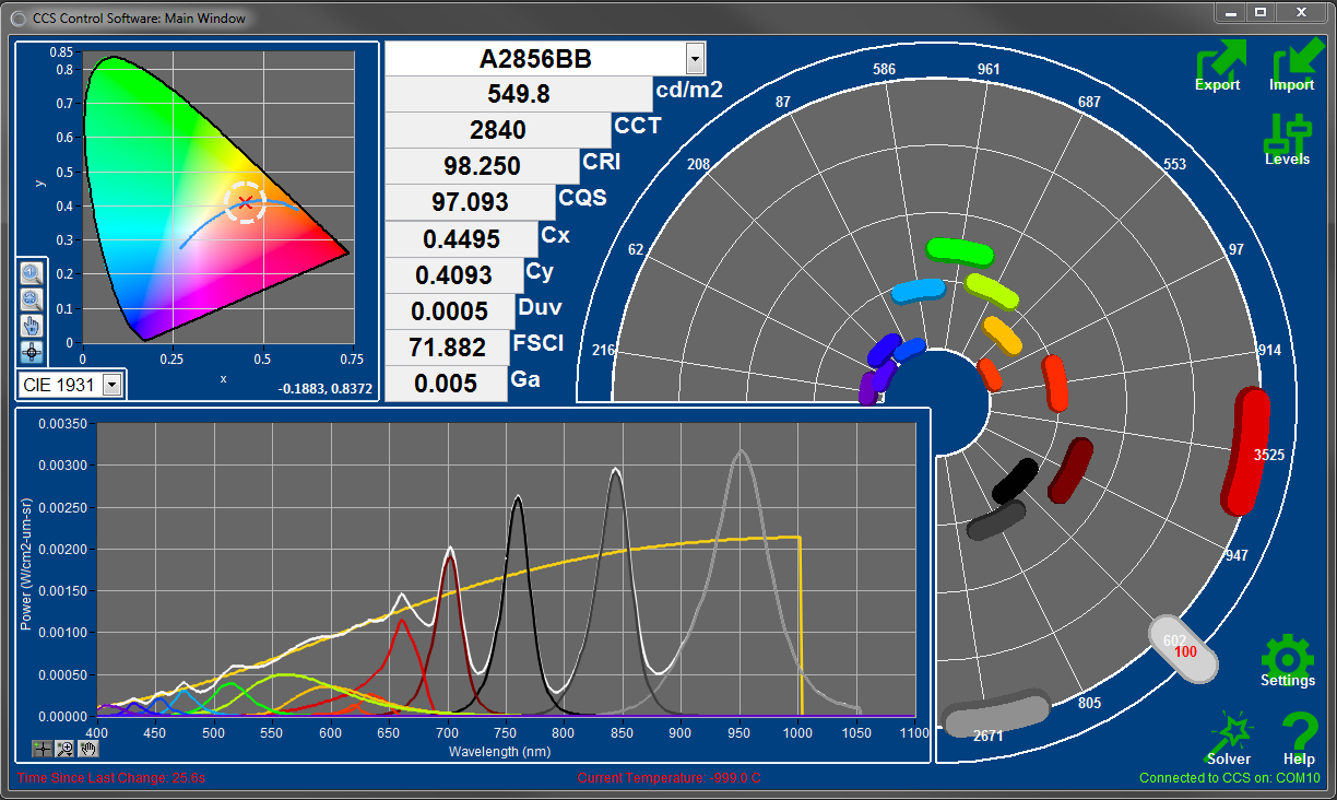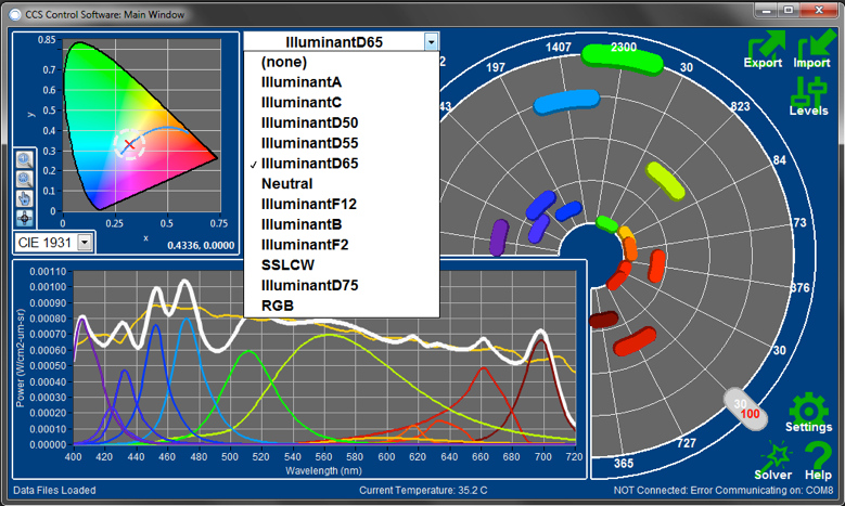 このオプションを使用することにより、ユーザーが独自のターゲットとする光源スペクトル情報を(CCSコントロースソフトウエアに)アップロードし、希望のスペクトルに最も近くなるようにLEDを最適化することができます。