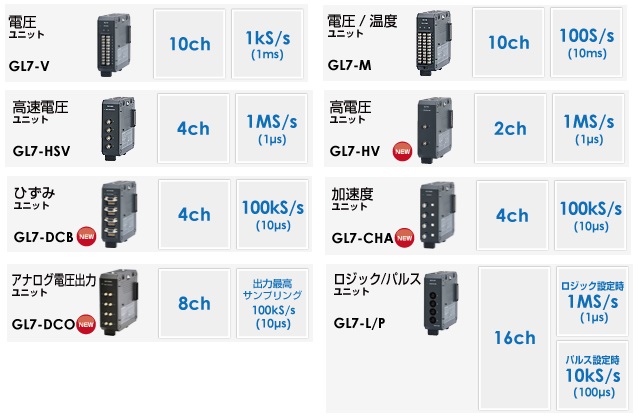 8種類のj豊富なアンプユニットでさまざまな計測シーンに対応可能