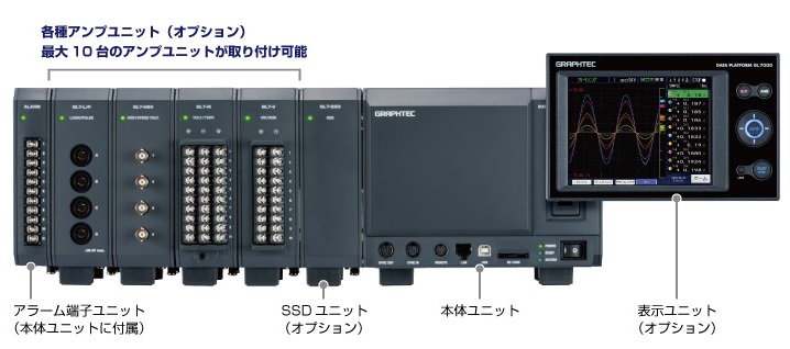 ■デュアルサンプリング機能の搭載で低速サンプリングで長時間計測中の突発現象を高速サンプリングで収録可能 ■各種ユニットが着脱可能。アンプユニットは最大10ユニットまで混在可能。 ■表示ユニットは、タッチパネル方式を採用し、簡単操作。 ■豊富な種類のアンプユニットで各種測定ニーズに対応可能。 ■各種記憶媒体を装備 最大128GB SSDをオプションで用意