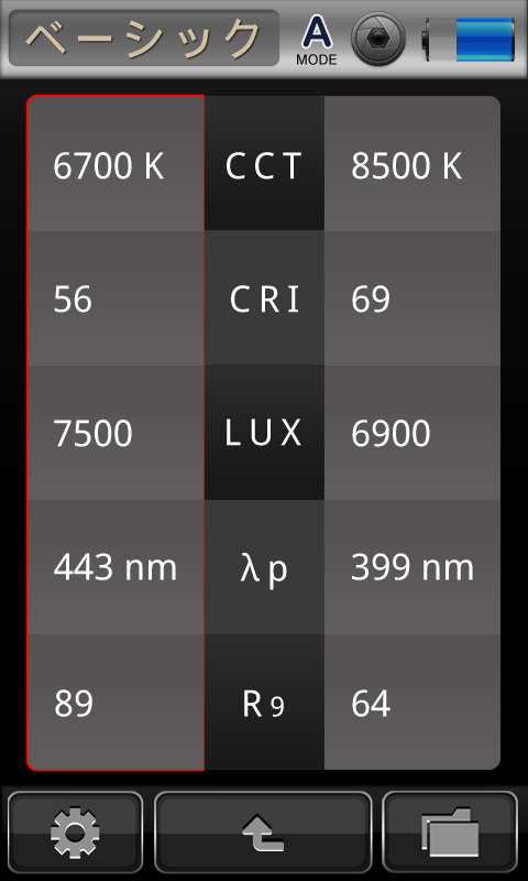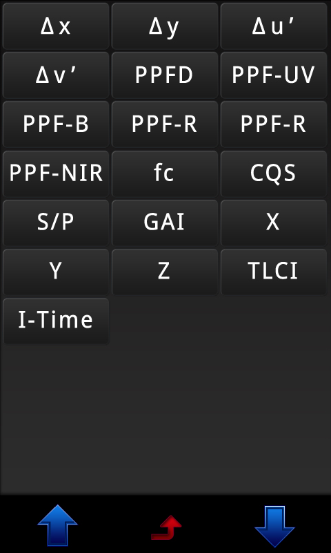 よく利用されるRGB波長範囲(400~700nm)における総合数値、及びRGB各波長範囲のPPFDの数値も即時に機器上に表示されます。