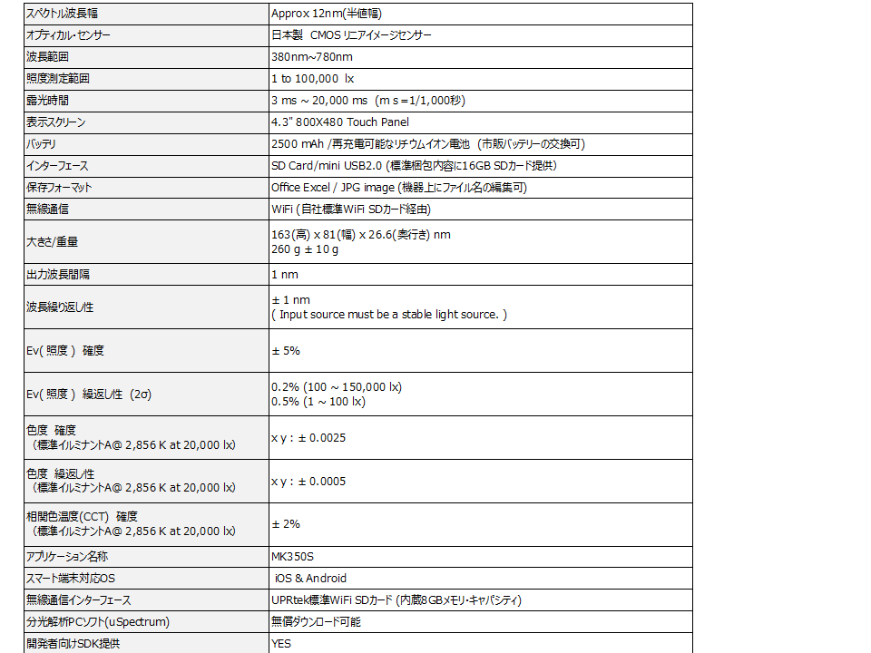UPRtek MK350S の主な特長