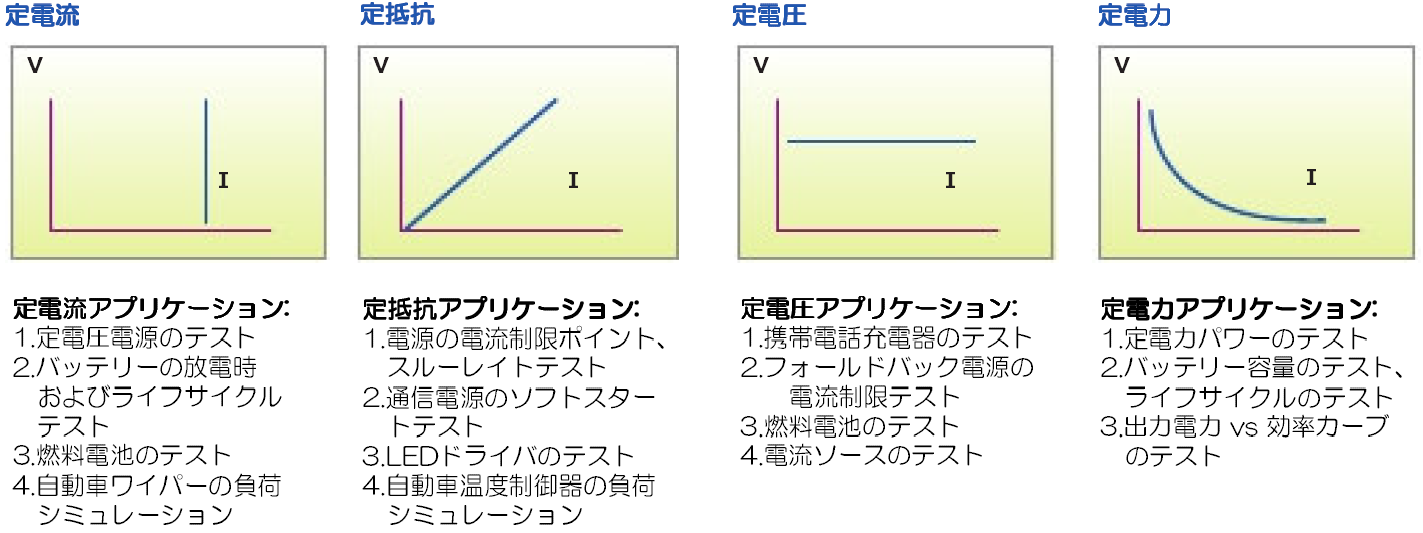 CV、CC、CR、CPの他、定インピーダンス(CZ)モードで動作させることができます。