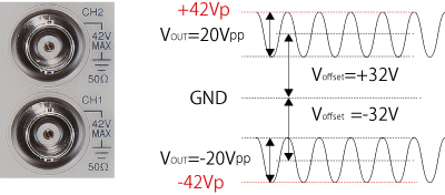 | 信号出力グランド | シャーシから絶縁:最大42Vpk(CH1出力グランドと共通) |