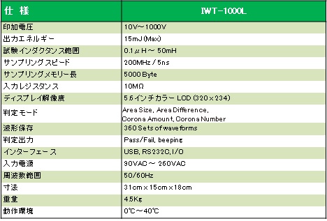 IWT-1000L は、超低インダクタンス・コイル測定用に特別に設計されたインパルス巻線試験機(インパルスウィンディングテスタ)で、プログラマブルインパルス電圧 10V~1000Vを提供します。測定されるインダクタンス・レンジは0.1μH~50mHで、高出力インダクタンス, トランスフォーマー, ワイヤレス・チャージャー・コイルなど様々なコイルのほとんどすべてをカバーします。