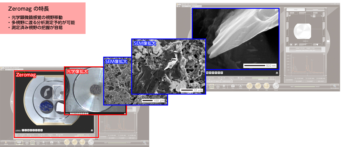 メイン画面に表示したホルダーグラフィックや光学CCD画像*1を使って、視野探しや分析位置の指定が行えます。
