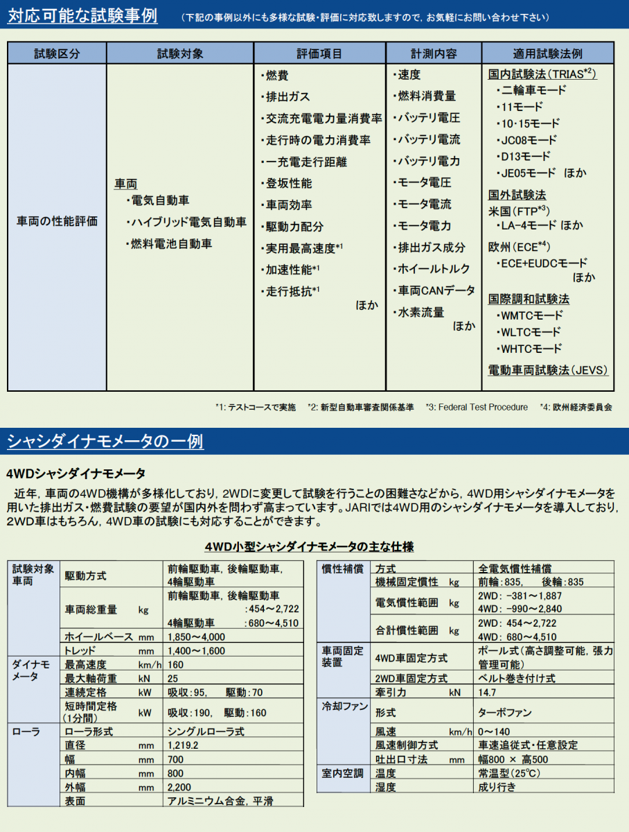 出展企業情報 企業名 一般財団法人日本自動車研究所(JARI) 企業PR 受託・委託試験、共同研究の公的機関です。自動車関連の試験法策定のノウハウを活かして各社様からの委託評価試験を実施するとともに、評価試験設備の貸出しを行っております。保有する設備は自動車に限らず他分野でのご利用も可能です。