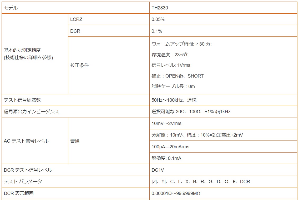 TH283Xシリーズは、最新の技術と高密度回路設計を採用し、LCRテストの本質を集中させた低コストで高性能な新世代の小型LCRメーターです。伝統的な機械式の電源スイッチの代わりに、ソフトウェア制御の電源スイッチを採用しています。 0.05%の基本精度と良好な試験安定性は、それらのハイエンドモデルと比較して優れています。 4.3型TFT LCDディスプレイと新しいインターフェースシステムを搭載したTH283XシリーズLCRメーターは、エレガントな外観と操作性を備えています。また、各種インターフェイスとSCPIコマンドとの良好な互換性を備えているので、あらゆる種類のテストシステムを構成するのに便利であり、検査、生産、科学研究のための様々な要求を満たすことができます。