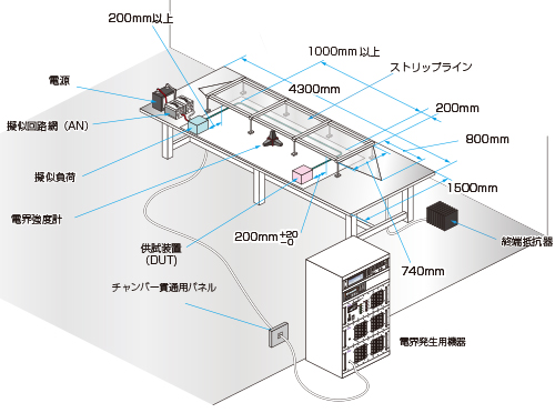 | 代表的な準拠規格名 | SAE J1113/24,ISO 11452‐3,(TEM Cell) SAE J1113/23,ISO 11452-5 (ストリップライン) R10, 2004/104EC(旧:95/54EC),97/24/EC JASO D001-94,JASO D011 その他各社メーカー規格 |