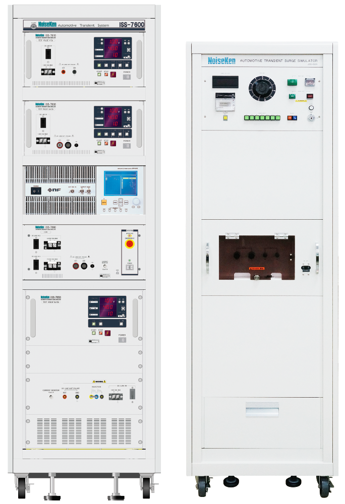 車両内で発生する様々な過渡的サージを模擬して発生し、搭載電子機器の耐性を評価する試験器です。