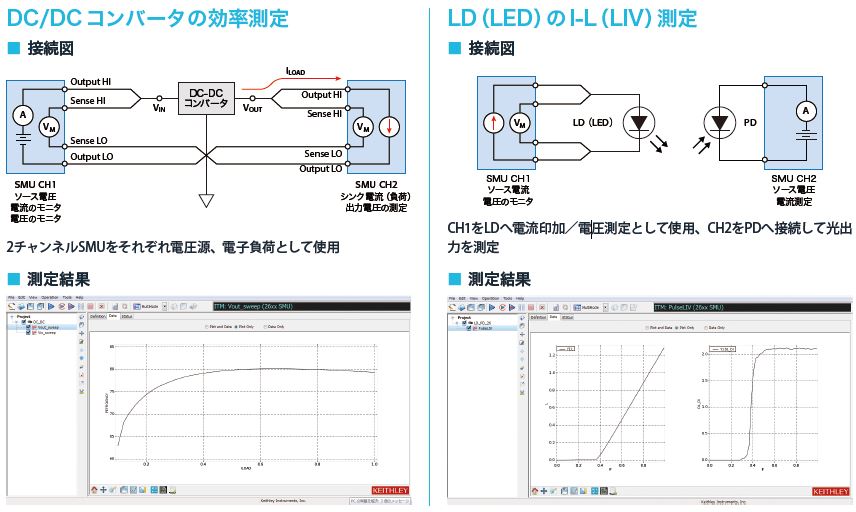 部品/デバイスの特性評価時間を短縮する最強のツールです。ソースメータ(SMU)との組合せで、半導体パラメータ・アナライザと同等の測定能力、低コストでも高性能を実現できます。