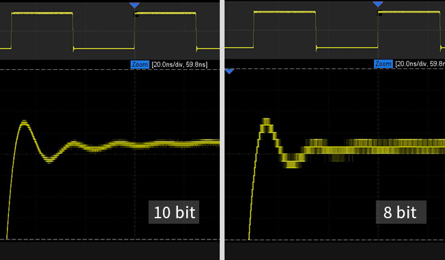 10ビットモードとズームを組み合わせることで、波形のノイズをより詳細に表示します。