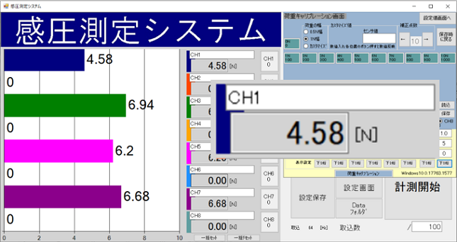 お客様のご使用環境でキャリブレーションを行っていただくことで、出力値を換算値[N」で表示できます。※アプリケーション内で表示される換算値[N」は目安としてご利用ください。