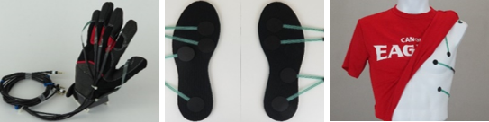 ・ハンドリング時の把持状態  ・靴底やインソールに配置して ・衣類の締め付け具合の評価