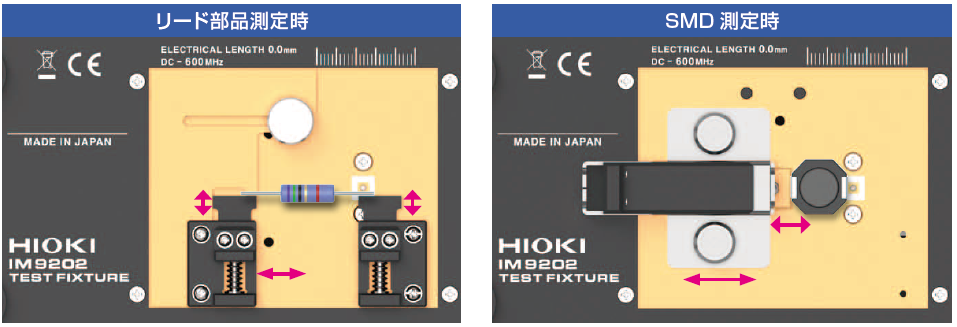 インピーダンスアナライザIM7580シリーズ専用のテストフィクスチャです。測定周波数は600MHzまで対応し、リード部品やSMD(実装部品)などの様々な形状・サイズにおいて高周波インピーダンス測定が可能です。