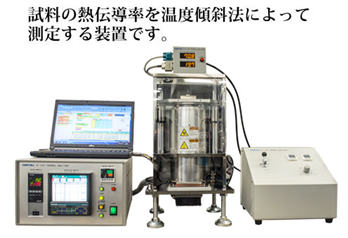 試料の熱伝導率を温度傾斜法(平板比較法)によって測定する装置です。 有償測定サービスのご相談も承ります。