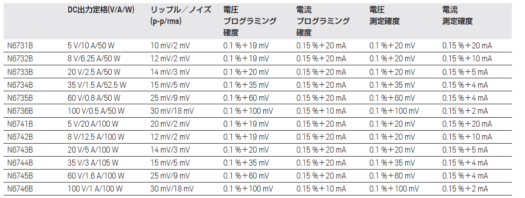 概要Keysight N6745Bは、100W、60V 、1.6Aに対応したDC電源モジュールで、プログラマブル電圧/電流測定機能および保護機能を低価格で提供し、DUTへの電源供給やフィクスチャ制御などのためのATEシステムの電源として最適なモジュールです。主な仕様N6745B および N6730B/40Bシリーズ・ベーシックDC電源モジュール・ラインナップN6730B/40Bシリーズ DC電源モジュールを使用するには、N6705C DC電源アナライザあるいはN6700シリーズ・メインフレームが必要です。