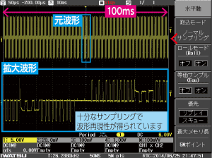 速いサンプリングを維持しながら、長時間の波形を取り込むことができます。