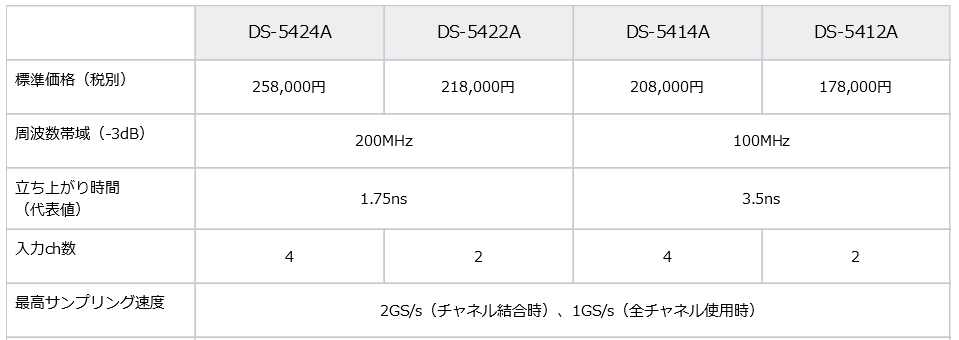 ■100MHz~200MHz(2ch、4ch)のラインナップ ■最大メモリ長500kポイント ■サンプリング速度2GS/s(ch結合時)