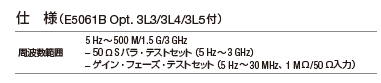 概要RFネットワーク・アナライザ5Hz~3GHzのネットワーク解析機能を提供 伝送/ 反射テストセットとSパラメータ・テストセットを準備 50Ω/75Ωのシステム・インピーダンスから選択可能低周波数オプション(3L3/3L4/3L5)電子部品のインピーダンス評価が可能(ZA解析オプション)ゲイン・フェーズ・テストポートを使った優れたPI/PDN解析を実現 DC-DCコンバータのループ・ゲインや電源インピーダンス(mΩ)オーダーの測定に威力を発揮主な仕様