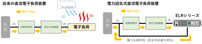 電子負荷を従来型の抵抗消費型ではなく、電力回生式を選択することで以下2つのメリットがあります。