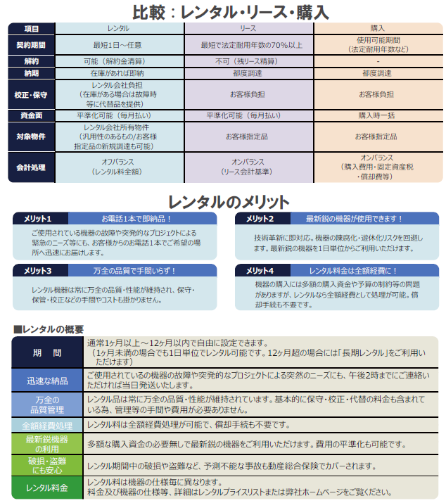 なサービスを多彩なレンタルソリューションと共にワンストップでご提供させていただいております。