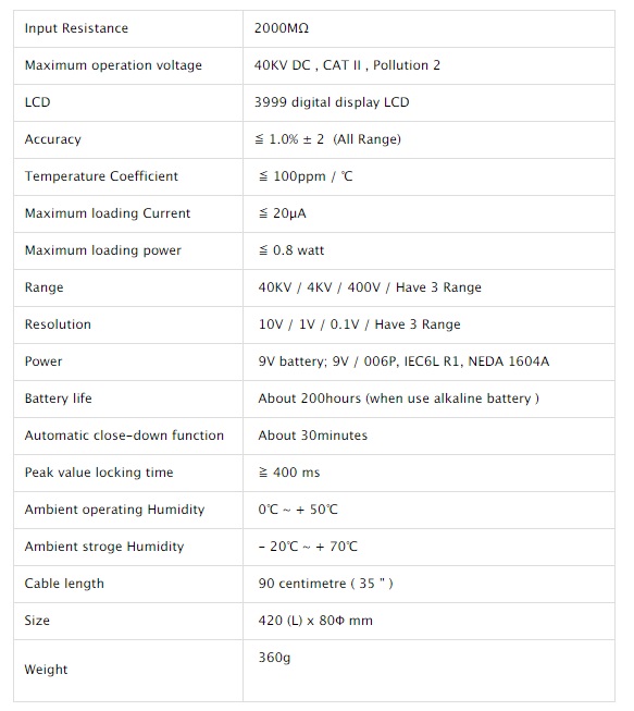 高電圧プローブ/高電圧DC電圧計 (40KV DC)の特長 製品概要DC 40KV CAT II汚染2。600MΩインピーダンス25KV±2%、40KV±3% 仕様*仕様は予告なく変更される場合がございます。 Pintech プローブ製品一覧*ほかにも取り揃えております。お問い合わせください。 *Pintech HPはこちらです。