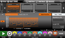 | シーケンス機能はメモリー長の長い波形を作成する場合、メモリーを効率的に利用することが可能です。作成した波形の順序・繰り返し回数・電圧などの波形パラメータ等を設定することができます。アドバンスドモードでは、ループ、ジャンプ、条件分岐等シーケンス毎に動作を指定できるので、シーケンス内のアナログ波形とデジタルパターンの最大16,384エントリで複雑な波形を定義できます。 |