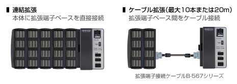 GLT400本体に入力端子および拡張端子ベースを組み合わせ、測定条件に最適な機器を構築できます。