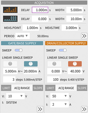大電流モード搭載により、2000Aまでの大電流測定に対応できます。パルス幅、測定周期、測定範囲が可変できます。