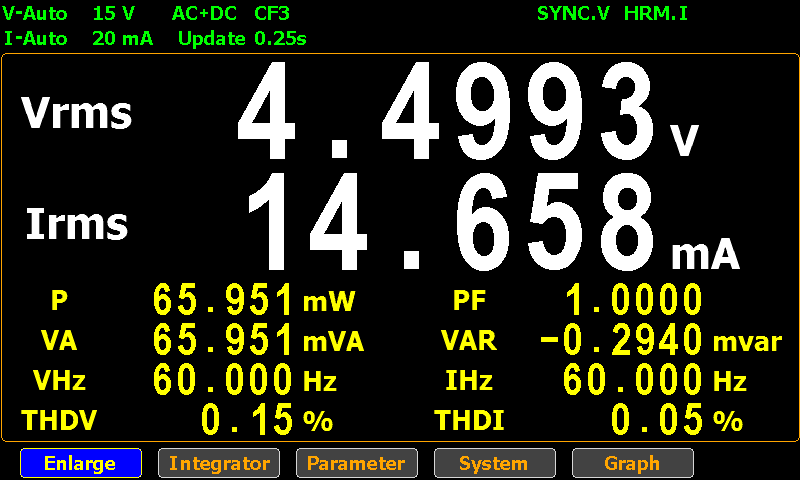 | 電力 | P, P+pk, P-pk, VA, VAR |