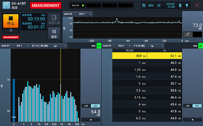 | オクターブバンド | 0.5~16 000 Hz 16バンド 最大4チャンネル | |
