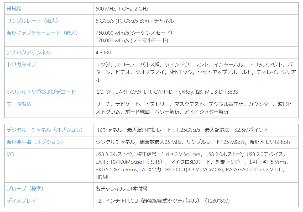 - ・500 MHz、1 GHz、2 GHzモデル