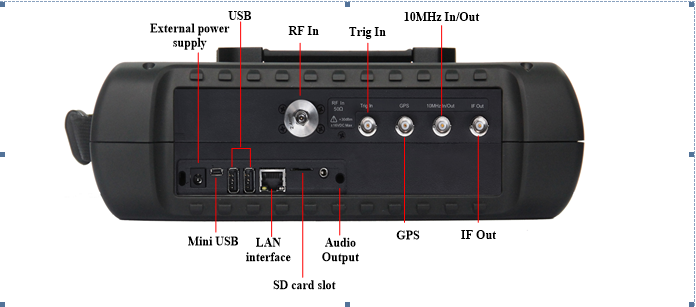 ・さまざまな補助テストインターフェイス:10MHz基準入力/出力インターフェイス、GPSアンテナインターフェイス、ゼロスパンIF出力インターフェイス、外部トリガー入力インターフェイスなど