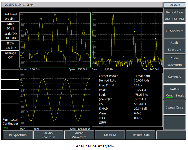 ・4041スペクトラムアナライザには、スペクトラムアナライザ、干渉アナライザ、AM / FM / PMアナライザ、パワーメータ、チャネルスキャナなどの多くの測定機能モードがあり、チャネル電力、占有帯域幅、 隣接チャネルパワー、搬送波対雑音比、電界強度、および放射マスク。 したがって、送信機と受信機のテストのための包括的なスペクトル分析と診断サービスを提供できます。