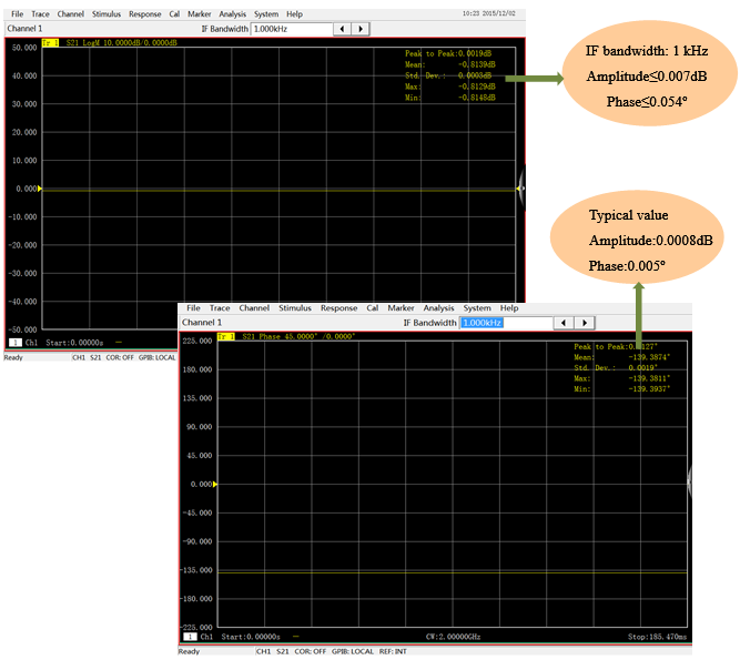 トレースノイズにおける3672シリーズベクトルネットワークアナライザの優れた性能により、低挿入損失デバイスの正確な測定が大幅に向上します。 (例として3672Bを取り上げます)