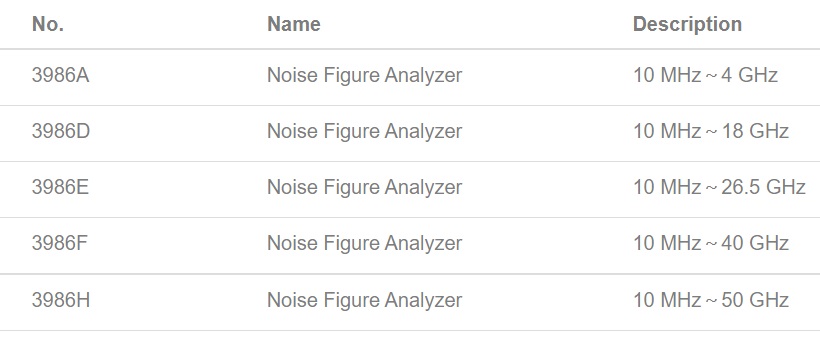 雑音指数アナライザ 3986シリーズ ラインアップ