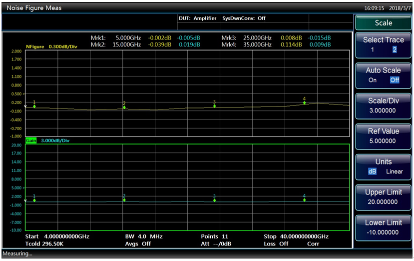 基本的なアンプ測定は、最も一般的な測定モードです。 これは、周波数変換なしで測定対象の雑音指数とゲイン測定に使用されます(アクティブまたはパッシブの線形ユニットまたは増幅器、フィルター、アイソレーターなどのシステムを含む)。
