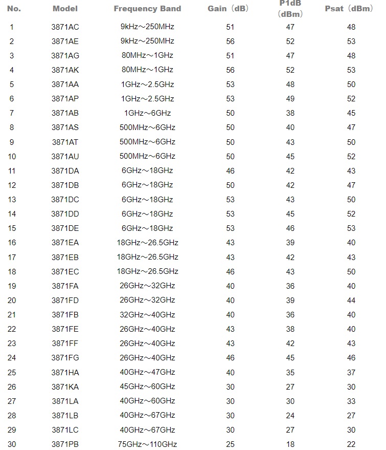 ブロードバンドソリッドステートアンプ 3871シリーズ は、9kHz〜110GHzで動作し、IEC60297-3-100.2008標準の4U19インチラックマウントシャーシで提供されます。広い帯域幅、高いゲインとパワー、広いダイナミックレンジ、低いスプリアス信号、および非常に高い負荷耐性を備えて設計されているため、アンプは複数の周波数帯域をカバーする適切なテスト機器として使用できます。これは、電子カウンター測定、アンテナテスト、実験室計装、電磁両立性/電磁干渉テストなどのアプリケーションだけでなく、レーダー、マイクロ波イメージング、衛星通信などの狭帯域アプリケーションにも適しています。