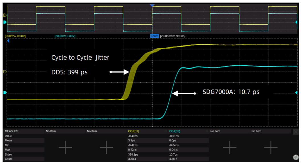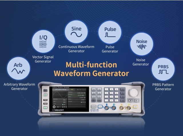SDG7000Aシリーズは、DCから1GHzまでの連続波まで、複数の波形発生機能を統合しており、アプリケーションによってはRF信号発生器の代わりに使用することができます。シグレントのTrueArbポイント・バイ・ポイント任意波形発生技術を採用し、0.01Sa/sから2.5GSa/sまでのユーザー調整可能な出力サンプルレート、優れたジッタ性能、最大設定可能帯域幅500MHz以上のI/Qベクトル信号発生を可能にします。シグレントのEasyPulseアーキテクチャの利点を生かし、最小パルス幅1nsの低ジッタパルスを生成することが可能です。