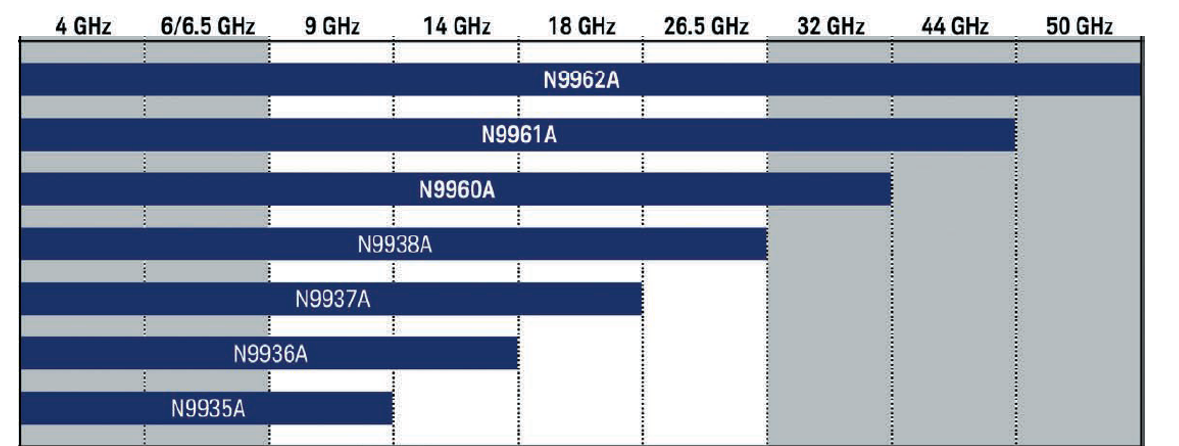 ●N993xA: 9/14/18/26.5GHz モデル N996xA: 32/44/50GHz モデル ●リアルタイム・スペアナ、トラッキング・ジェネレータ、プリアンプ、 干渉解析、チャネル・スキャナー、IQアナライザ、雑音指数、OTA測定など ●信頼性の高い測定:ベンチトップ測定器と同等の正確な測定 ●高い柔軟性:機能をアップグレード可能