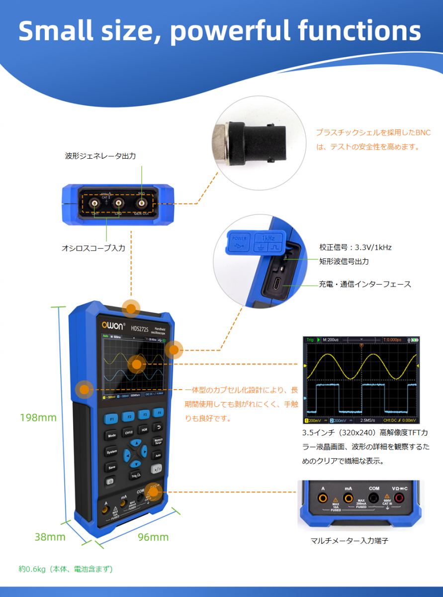 ・オシロスコープ+マルチメーター+波形発生器(HDS2102Sのみ)の多機能を1台に集約