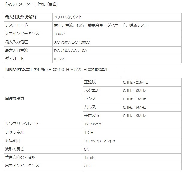 オシロスコープ+マルチメーター+波形発生器(HDS2102Sのみ)の多機能を1台に集約