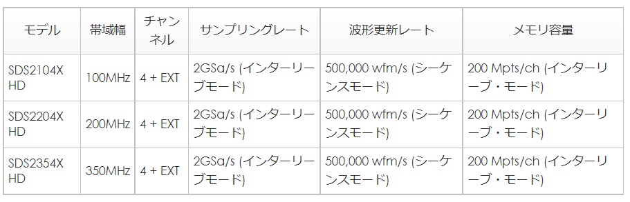 ウェーブクレスト株式会社 オシロスコープ 最大350MHz, 12ビット, デジタルストレージオシロスコープ Siglent (SDS2104X HD / SDS2204X HD / SDS2354X HD)