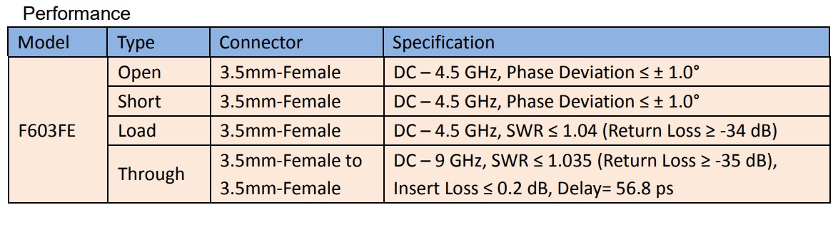 Open(3.5mm-Female )、Short(3.5mm-Female )、Load (3.5mm-Female )、Through(3.5mm-Female to 3.5mm-Female )