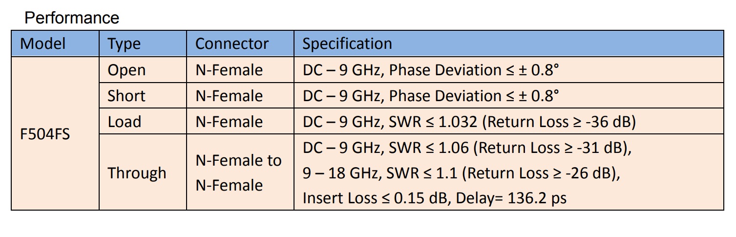 【セット内容】Open(N-Female)、Short(N-Female)、Load (N-Female)、Through(N-Female to N-Female)